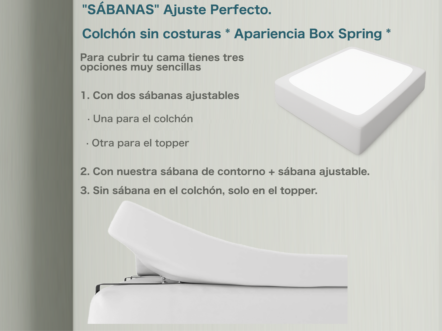 - Instrucciones: Elevar los cabezales siempre desde la parte central. Dejar respirar 24 horas antes de su uso. Eliminación de arrugas en los primeros días.