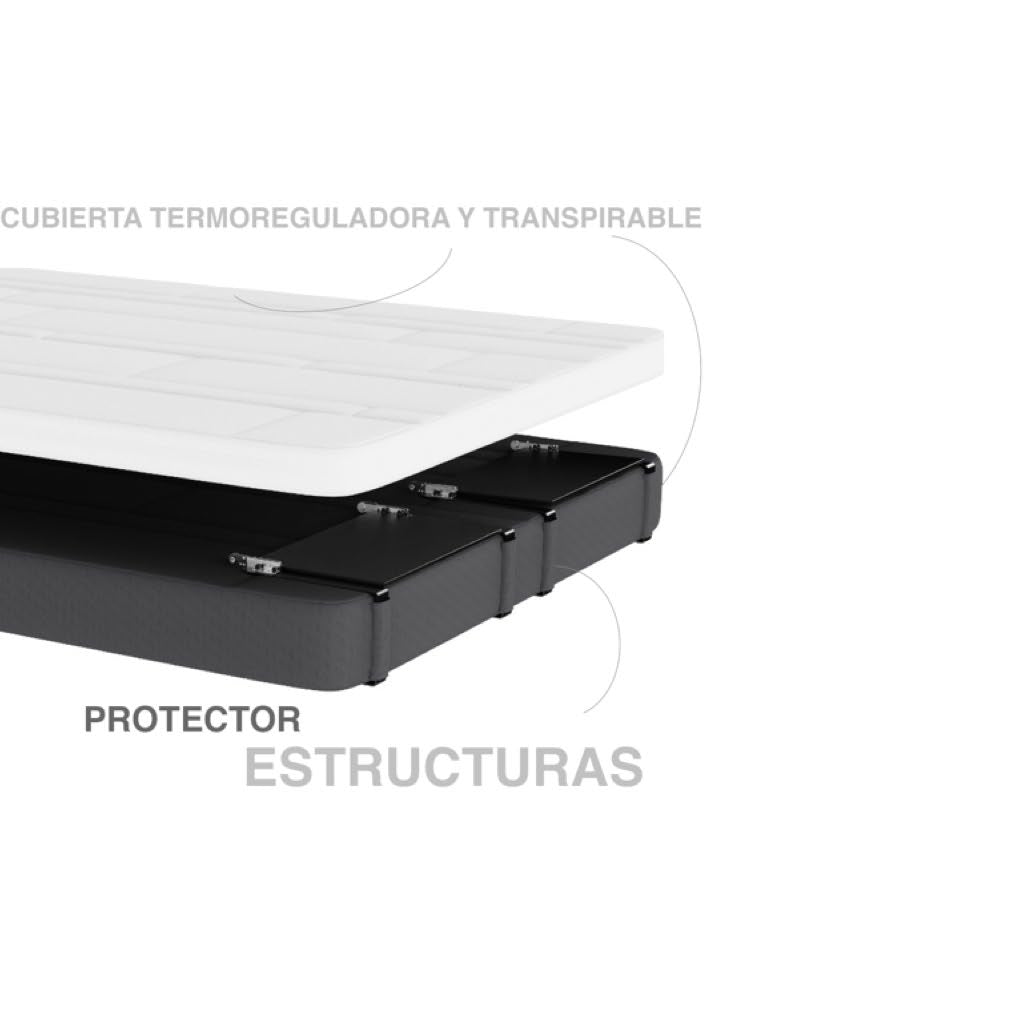 - Colchón: Capa 2 - Espuma de Gel: Alivio de presión y control de temperatura. Capa 3 - Espuma LGX de Soporte: Base firme para alineación de columna y durabilidad.